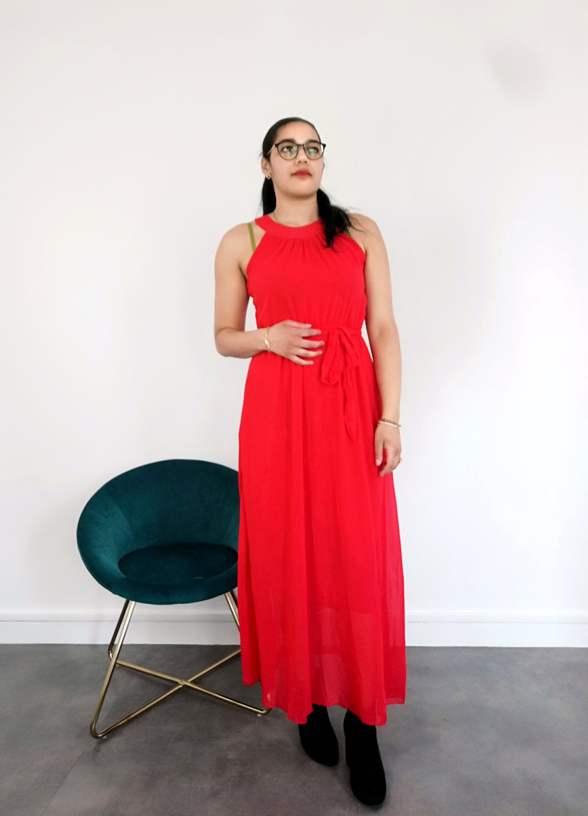 Robe manche court à col rond Rouge